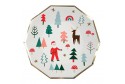 Set de 8 grandes assiettes cartonnées pour les fêtes de Noël. Assiettes de la collection Chrismas Party design Meri Meri. Le père Noël et son renne se trouvent en pleine forêt de sapins et de champignons dans une nuit étoilée !