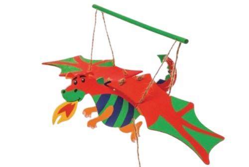 Réalisez une marionnette dragon en bois et faites bouger le bâtonnet pour faire battre les ailes ! Décorez avec des feutres ou de la peinture au choix (non fournis).