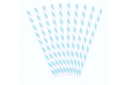 Set de 16 Pailles en carton fond blanc & bleu turquoise