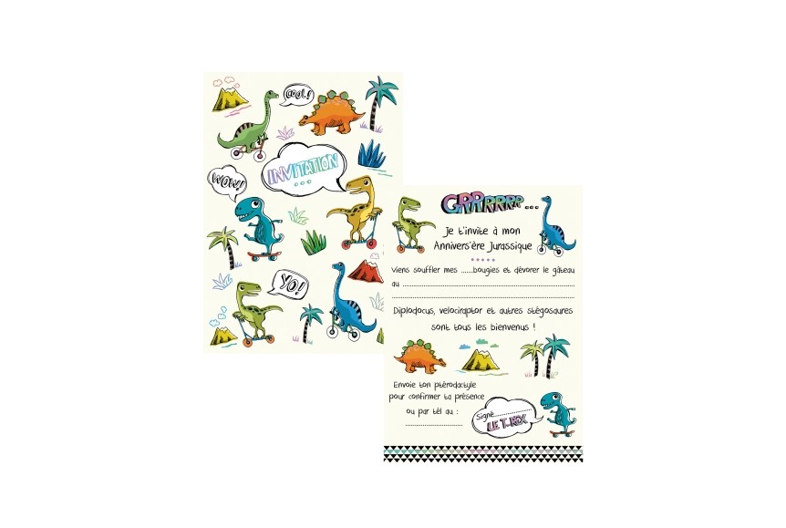 8 cartes thème dinosaures et 8 enveloppes vertes