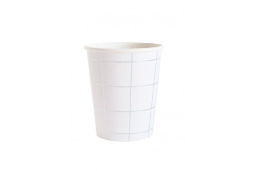 Set de 8 gobelets cartonnées pour les fêtes de Noël, un anniversaire, ... de la collection Christmas Party design Meri Meri. Très tendance, mélangez des assiettes étoiles argent et des serviettes étoiles argentées Meri Meri