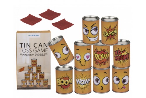 Composé de 10 boîtes en métal 5 emoji et 5 bruits et de 3 sachets en tissu, ce jeu de lancer de petite taille est amusant aux goûters d'enfants, fêtes de famille, ...