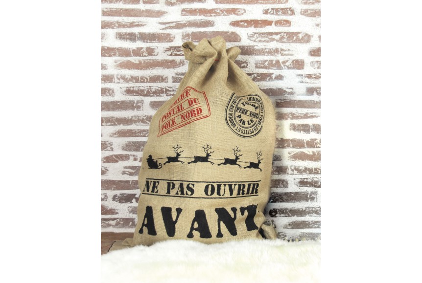 Très grand sac sac à cadeaux en jute "Ne pas ouvrir avant le 25 décembre"