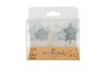 Set de cinq bougies avec et sans paillettes en forme d'étoiles de couleur argent montées sur une pique en bois.