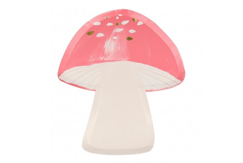 Set de 8 assiettes en carton en forme de champignon rosé, blanc et détails or