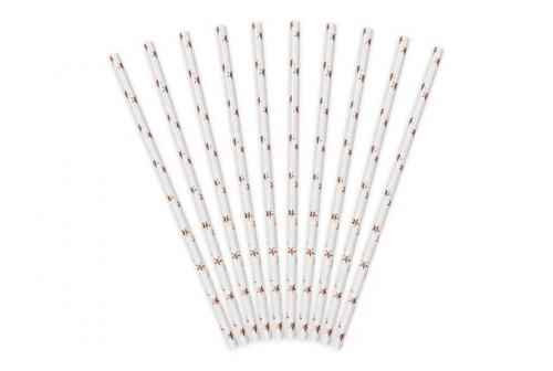 10 pailles blanches à étoiles roses dorées