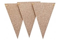 Grande guirlande à fanions pailletés de couleur rose dorée