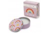 Une boîte ronde thème RAINBOW avec le baume parfum assortis à glisser dans un sac à souvenirs aux fêtes de filles.