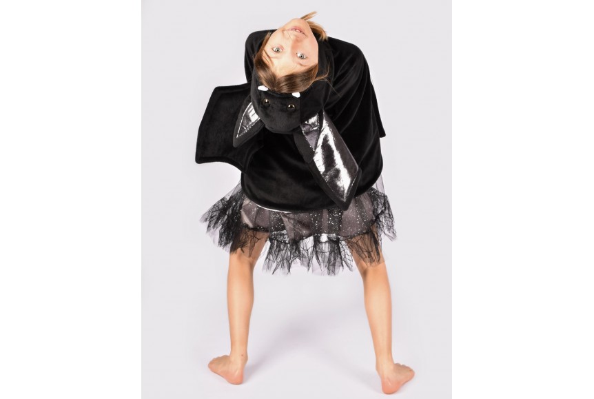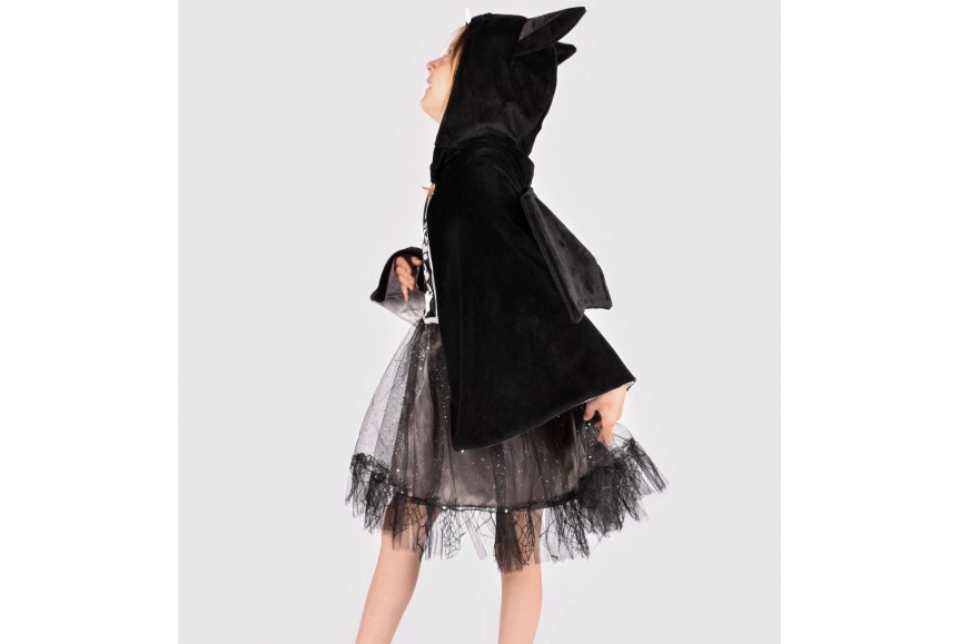 Envolez-vous dans cette cape de luxe chauve-souris, en peluche douce et confortable avec des détails argentés. Le costume est doté d'une capuche cousue avec des yeux et des oreilles, ainsi que d'ailes cousues à l'arrière de la cape se ferment à l'aide d'une bande Velcro.
