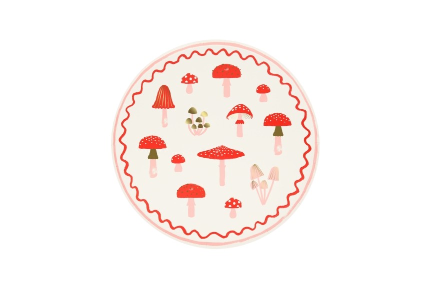 Assiettes thème Amanites imaginées et dessinées par les mamans de Meri Meri. Parfaites pour une ambiance bucolique, un anniversaire de petites fées à mélanger avec les assiettes marguerite pour une table féérique... et pour Noël