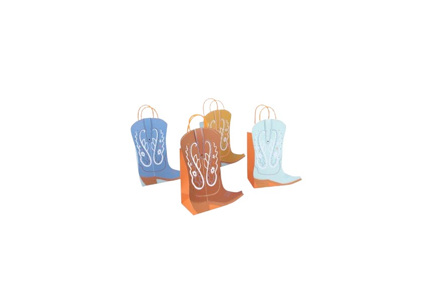 Une très jolie création de sacs en forme de santiags aux jolies couleurs pastel pour remporter les souvenirs de la fête. Set de huit sacs de la nouvelle collection Meri Meri.