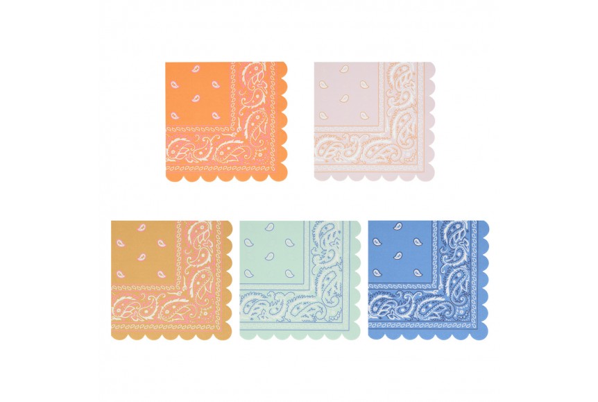 NOUVEAU ! Les serviettes motif bandana de couleur pastel de la collection Meri Meri sont magnifiques pour vos tables de fêtes enfants et soirées adultes