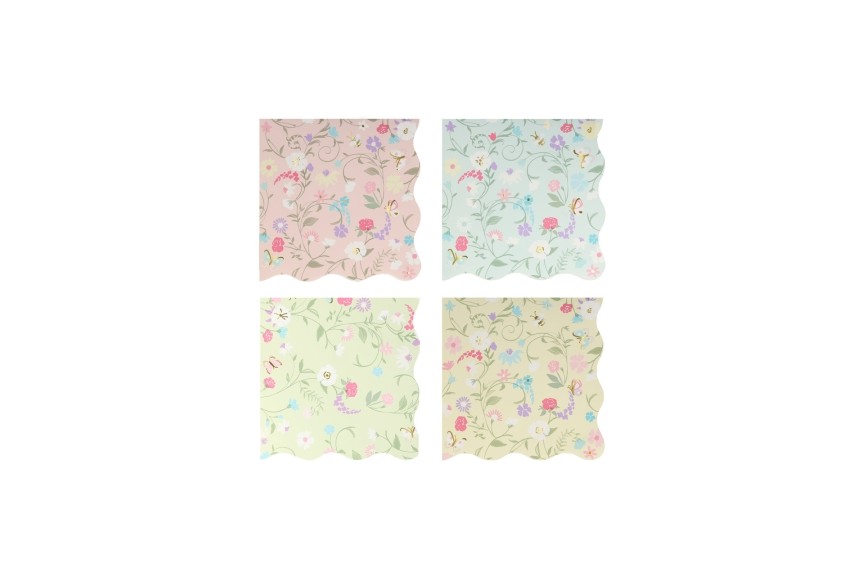 Seize serviettes papier écologiques pour une table fleurie et élégante aux couleurs pastel A mélanger avec les assiettes, ...