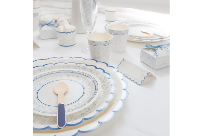 Set de huit Assiettes pour entrée et dessert joliment fleurie. Elles sont parfaites pour un déjeuner de baptême, une communion, anniversaires ...