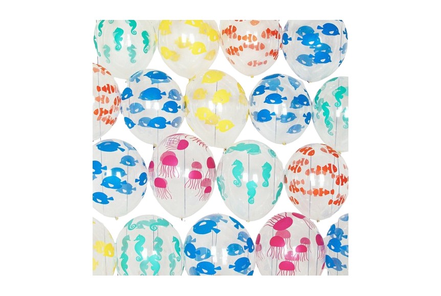 Des ballons animaux marins imaginés par My Little Day. Habillés de poissons tropicaux, ces ballons de baudruche sont évidemment parfaits pour une decoration fete dont le thème est animaux de la mer, sirène ou fonds marins. En gros, dès qu'il s'agit de la mer ou de poissons, ça marche ! Assortis à la vaisselle, aux invitations ou aux goodies de la même gamme, ils sont idéaux pour une boum ou un goûter déguisé ! À accrocher, ou à suspendre, à gonfler à l'air ou à l'hélium, ils sont parfaits !