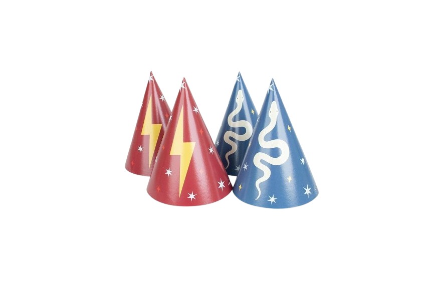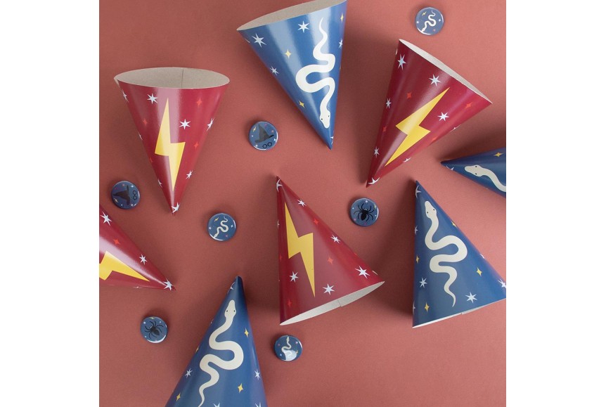 Abracadabra, levez vos baguettes et enfourchez votre balais ! Vous avez toujours rêvé d'intégrer une célèbre école de magie et d'apprendre à jeter des sorts les plus surprenants les uns des autres ? En attendant de recevoir votre lettre d'admission, craquez pour notre collection sorcier qui convient aussi bien pour un anniversaire que pour Halloween. 8 chapeaux pointus sorcier fabriqués en Europe à partir de papier recyclé et imaginés par My Little Day pour un goûter d'anniversaire Harry Potter réussi. A porter pendant la fête ou lors d'une animation photobooth.