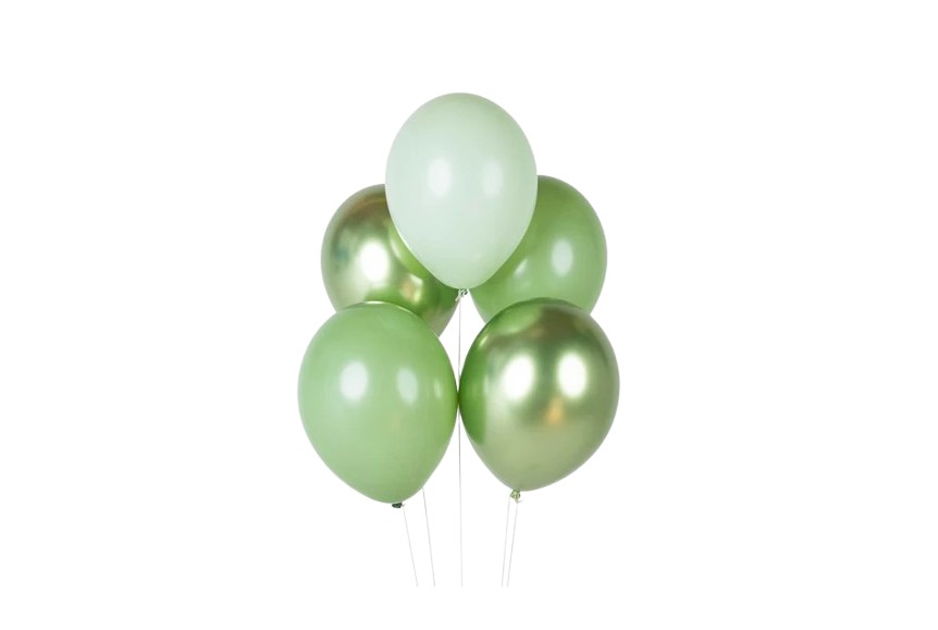 Une pochette contenant 10 ballons de baudruche dans les tons de vert sauge. Ils sont parfaits pour un anniversaire dinosaure ou un mariage vert sauge. N'hésitez pas à les associer avec d'autres ballons pour créer une arche ou une grappe de ballons.
