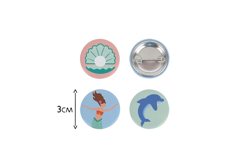 Dimension : 3,2 cm - Coque en métal plastifiée avec épingle à nourrice au dos - Vente à l'unité