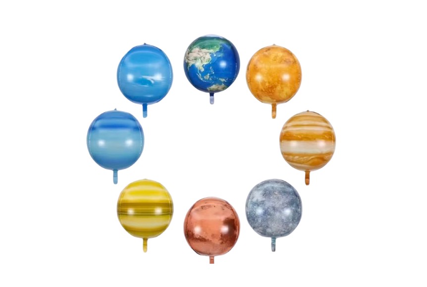 Un gros ballon terre qui flotte dans les airs pour une fête planète terre, espace, ... Mélangez avec des ballons mylar etoile, lune pour une super déco spatiale.