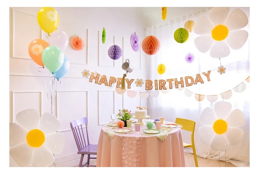Ces ballons de baudruche imprimés avec de jolies marguerites, sont parfaits pour compléter la décoration d'un anniversaire fleurs. Ils sauront ravir les invité(e)s Vous pouvez les accrocher au mur, les intégrer à une arche de ballons ou encore les laisser recouvrir le sol de votre pièce.