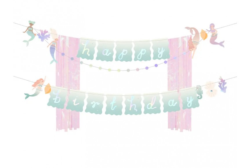 Bannière Joyeux Anniversaire Sirène, en papier, mélange de couleursProduit à monter soi-même.