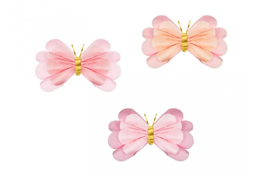 Retrouvez tout le nécessaire pour un montage facile et rapide de 3 papillons de couleurs différentes pastel pour la décoration de votre fête, un souvenirs DIY à faire avec les enfants, ...
