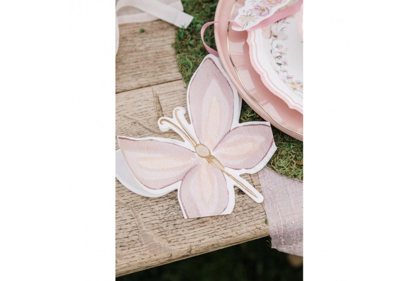 Dix serviettes en papier rose pastel et lilas en forme de jolis papillons de la collection Artyfêtes. Goûter de filles thème fées, papillon, ...