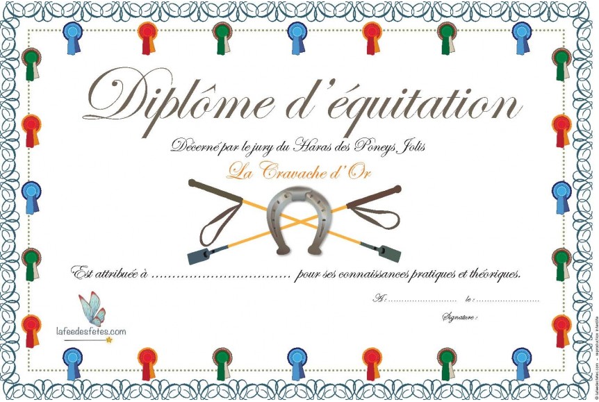 Téléchargez ce diplôme de "La Cravache d'Or" La Fée des Fêtes et imprimez-le pour l'offrir aux enfants.