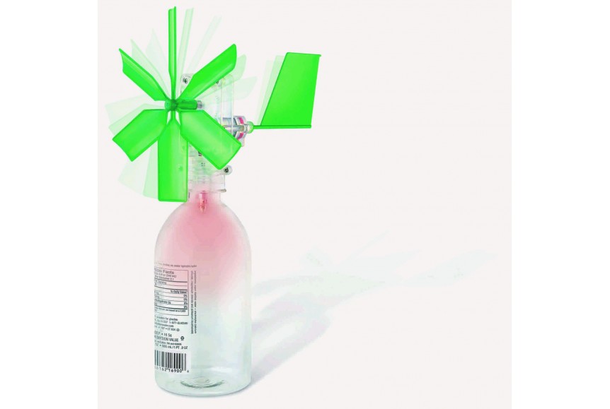 Regardes la DEL s'allumer grâce à l'énergie produite par le vent. Aucune batterie nécessaire ! Contribues à sauvegarder la planète en recyclant une bouteille en plastique pour former le pied de l'éolienne.